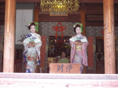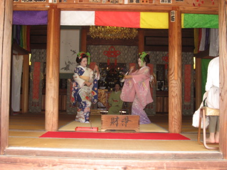 今年は4月にデビューした舞妓さんと、そのお姉さんにあたる芸妓さんをお招きし、本堂で初々しい舞いを披露していただきました。「お寺」と「舞妓さん」の組み合わせも温泉地独特の風情で、どなたも文句をおっしゃいません。それどころか、当日いらした方の中には、