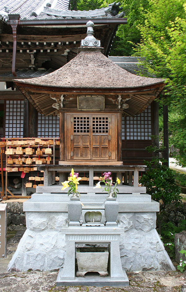 この桧皮葺の地蔵堂は、飛騨屋久兵衛四代目益郷が下呂本店屋敷内に約二百年前に建立したもので、現存する唯一の遺構です。